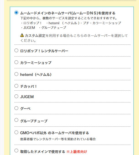 • ネームサーバーは必ず「ムームーDNS」に設定する。