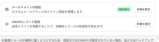 この設定をしていないとShopifyから送られるメールが高確率で迷惑メール弾かれてしまいます。