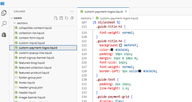 - ファイル名を "custom-payment-logos.liquid" などと入力して作成します。